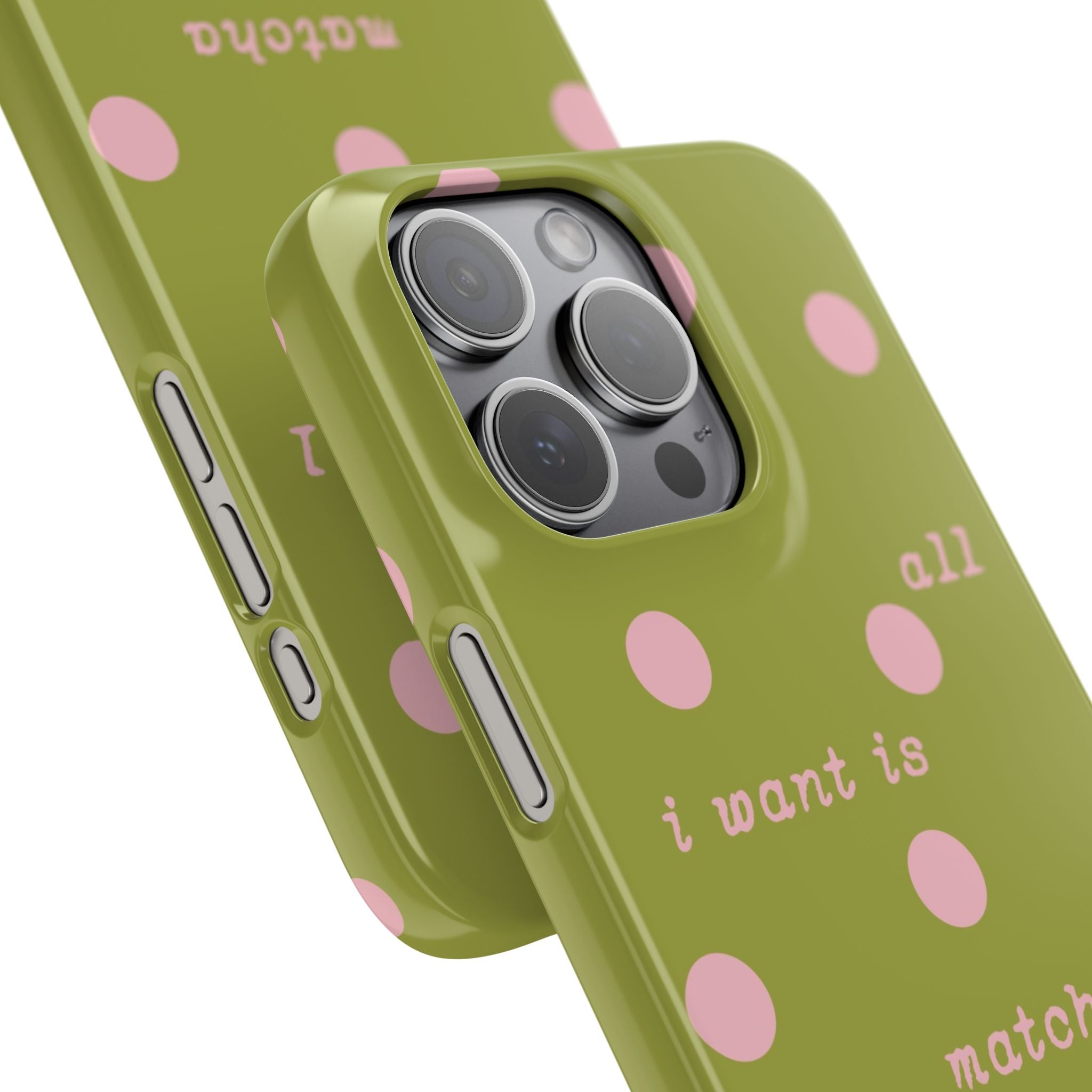 Slim, glossy, and easy to snap on, this design feels like a little pocket-sized reminder to keep going. With its soft, retro-inspired color palette and gentle message — “all I want is matcha and music” — it brings a quiet sense of hope to your daily routine.